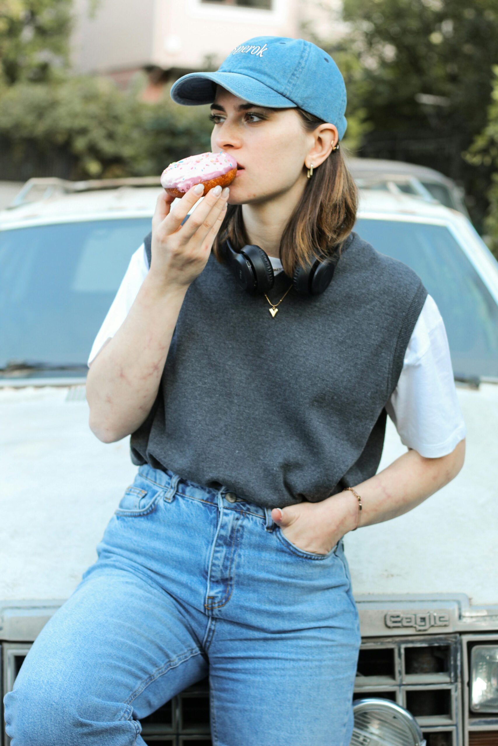 Complement your everyday wardrobe with this light-blue denim hat!